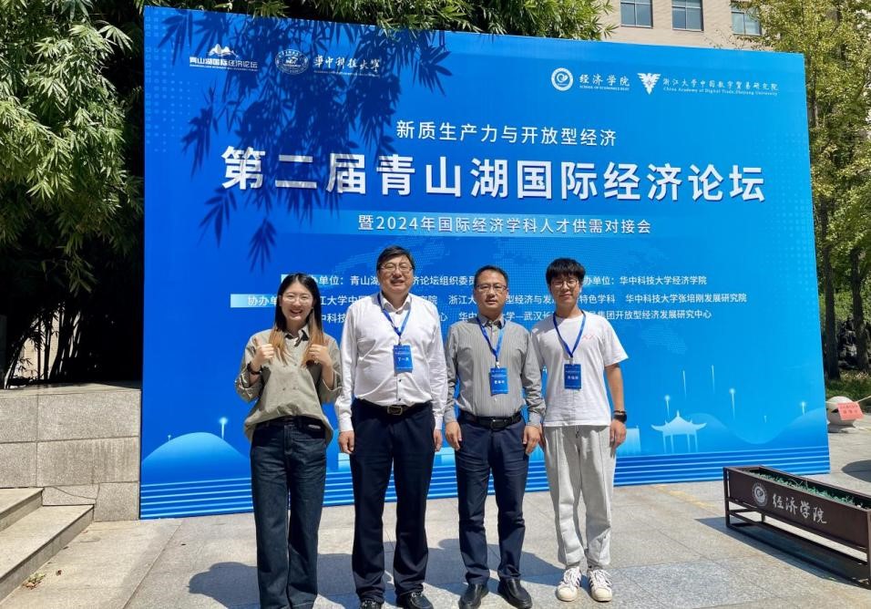 9月21—22日,第二届青山湖国际经济论坛暨2024年国际经济学科人才供需对接会在华中科技大学举行,论坛以“新质生产力与开放型经济”为主题。经济学院院长丁一兵教授、美国研究所所长史本叶教授以及博士研究生齐瑞卿、孙艺宁参加了本次论坛。